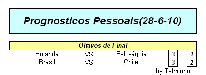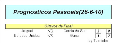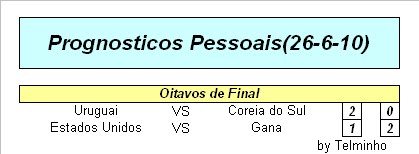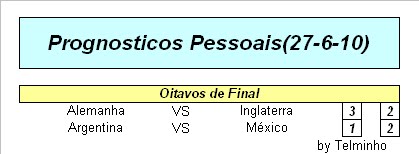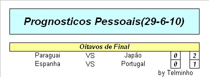 Surpresas: Paraguai e Gana souberam aproveitar o facto de o sorteio lhes ser favoravel e seguir para os quartos de final... Desilusões: Inglaterra pelo resultado volumoso que sofreu e Portugal,mesmo jogando com a forissima Espanha, esperava-se mais ao longo da competição...