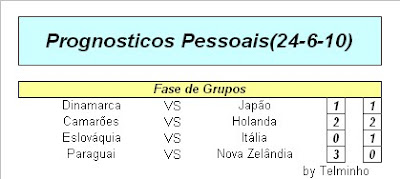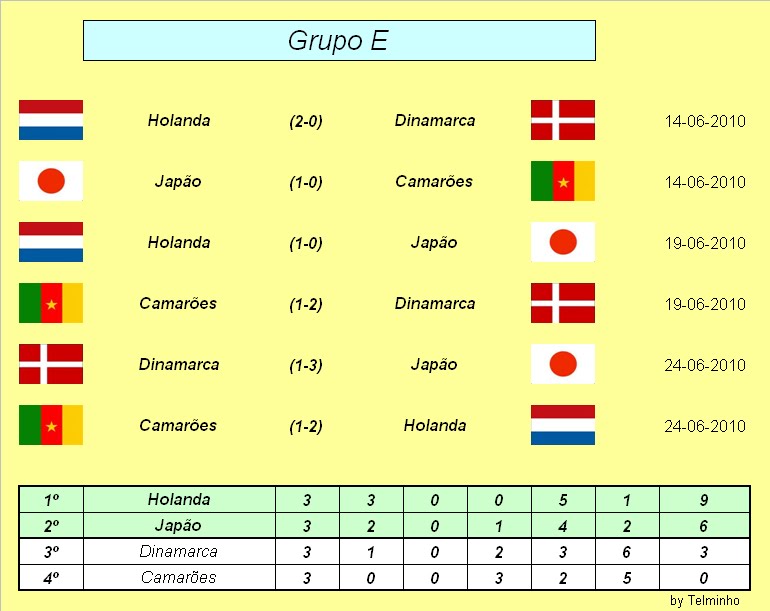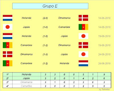Holanda: Laranja mecânica quanto baste Japão: Talvez a sensação da competição Dinamarca: Esperava-se um pouco mais Camarões: Promete muito,mas não convence