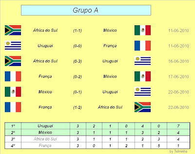 Uruguai: Vencedor do grupo com todo o mérito México: Mereceu sem duvida a passagem África do Sul: Quase criaram surpresa França: Vergonha nacional e desilução