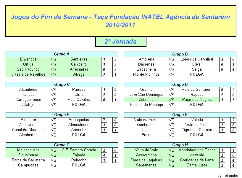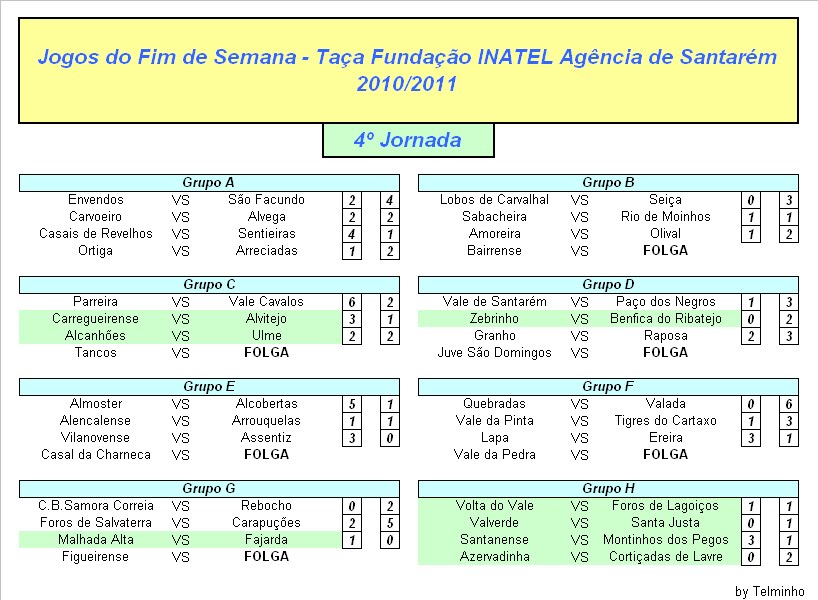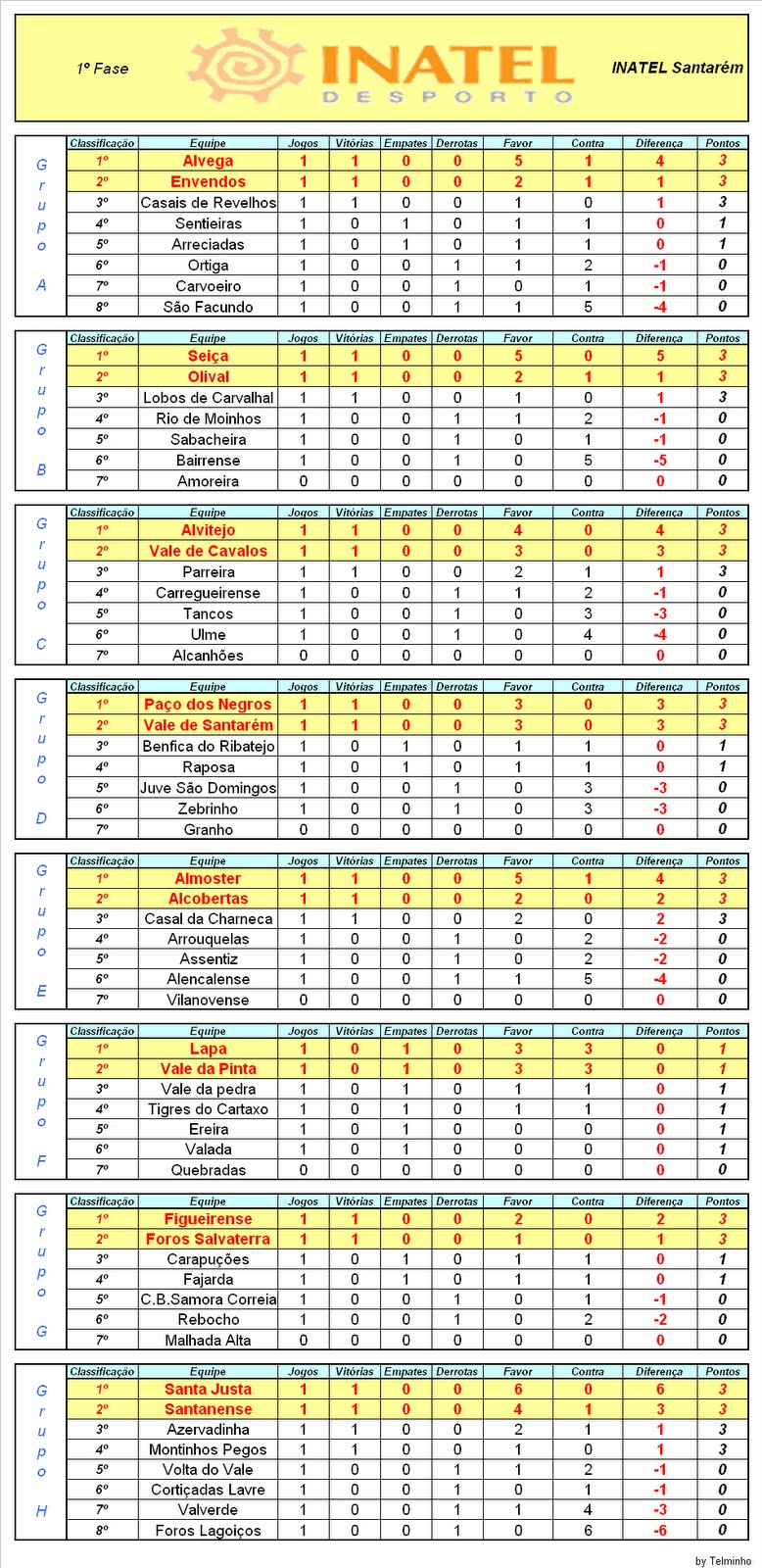 Destaques até a 3º Jornada Taça Fundação INATEL - Santarém