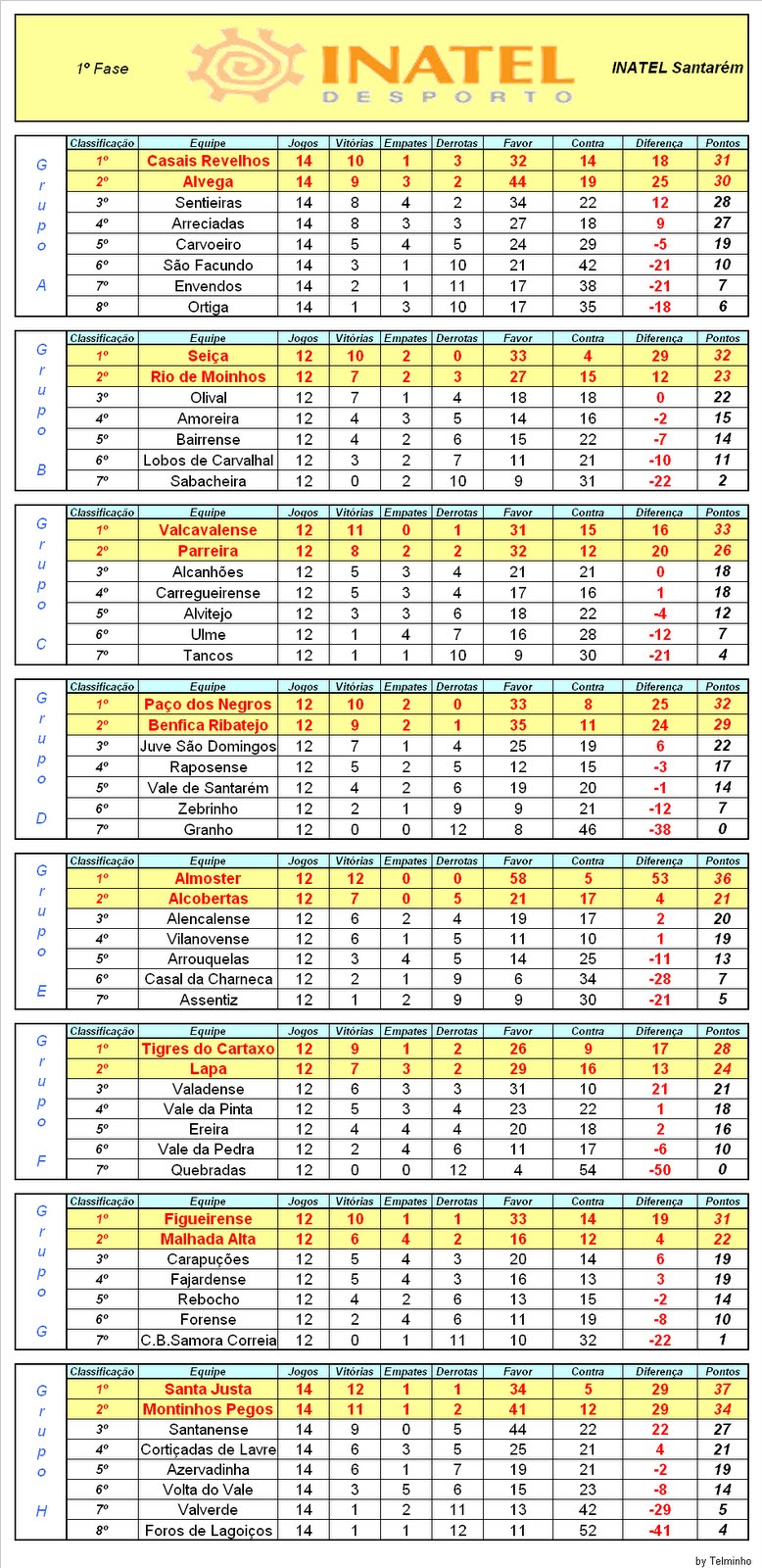 Devido ao avancar das horas...apenas deixo aqui todos os grupos da proxima fase...e apartir de amanha mais novidades virão...tanto sobre a 2º Fase como ainda sobre a 1º Fase que acabou agora...