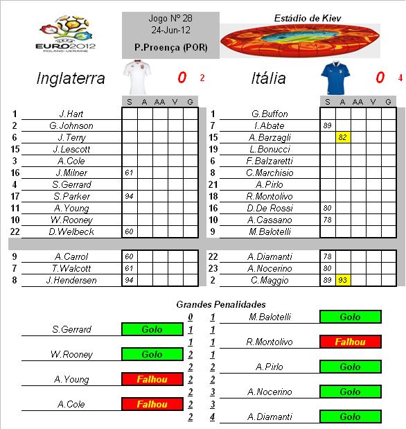 Inglaterra - Sem duvida que a Inglaterra chegou ao Europeu cheia de duvidas em relação a sua união grupo...mas rapidamente mostrou que estava de boa saude e passou no seu grupo com distinção...agora nos quartos de final, tinha a Itália...tal como a Inglaterra...são sempre candidatos cronicos a qualquer competição...mas não se poderia esperar grandes rasgos de genios...visto esta Inglaterra ser sem duvida das equipas mais "fracas" a nivel individual desde a muito tempo para ca...tentou jogar "à Italiana" frente a propria Itália, quase conseguiam chegar as mais finais, mas sucubiram nas grandes penalidades quando A.Young e A.Cole falharam consecutivamente a marcação...