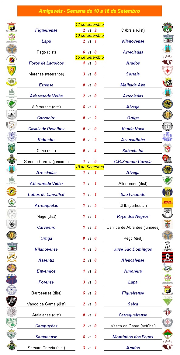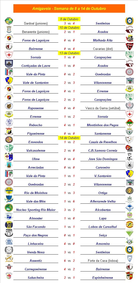 - Penso que os resultados foram os "esperados" a partida para esta 1º jornada...vitória importante da Ortiga (que parece esta época voltar a apresentar muito bom futebol) frente a um candidato e campeão em titulo da Serie 2, o Alvega...