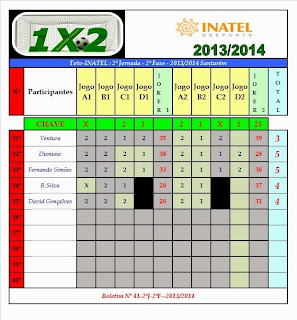 Toto-INATEL - Prognósticos - Jornada 2 - 2ª Fase - Liga INATEL 2013/2014