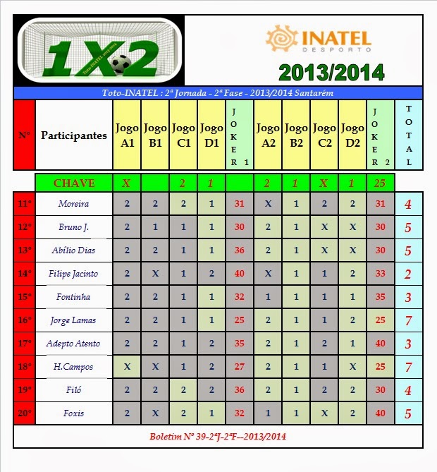 Toto-INATEL - Resultados - Jornada 2 - 2ª Fase